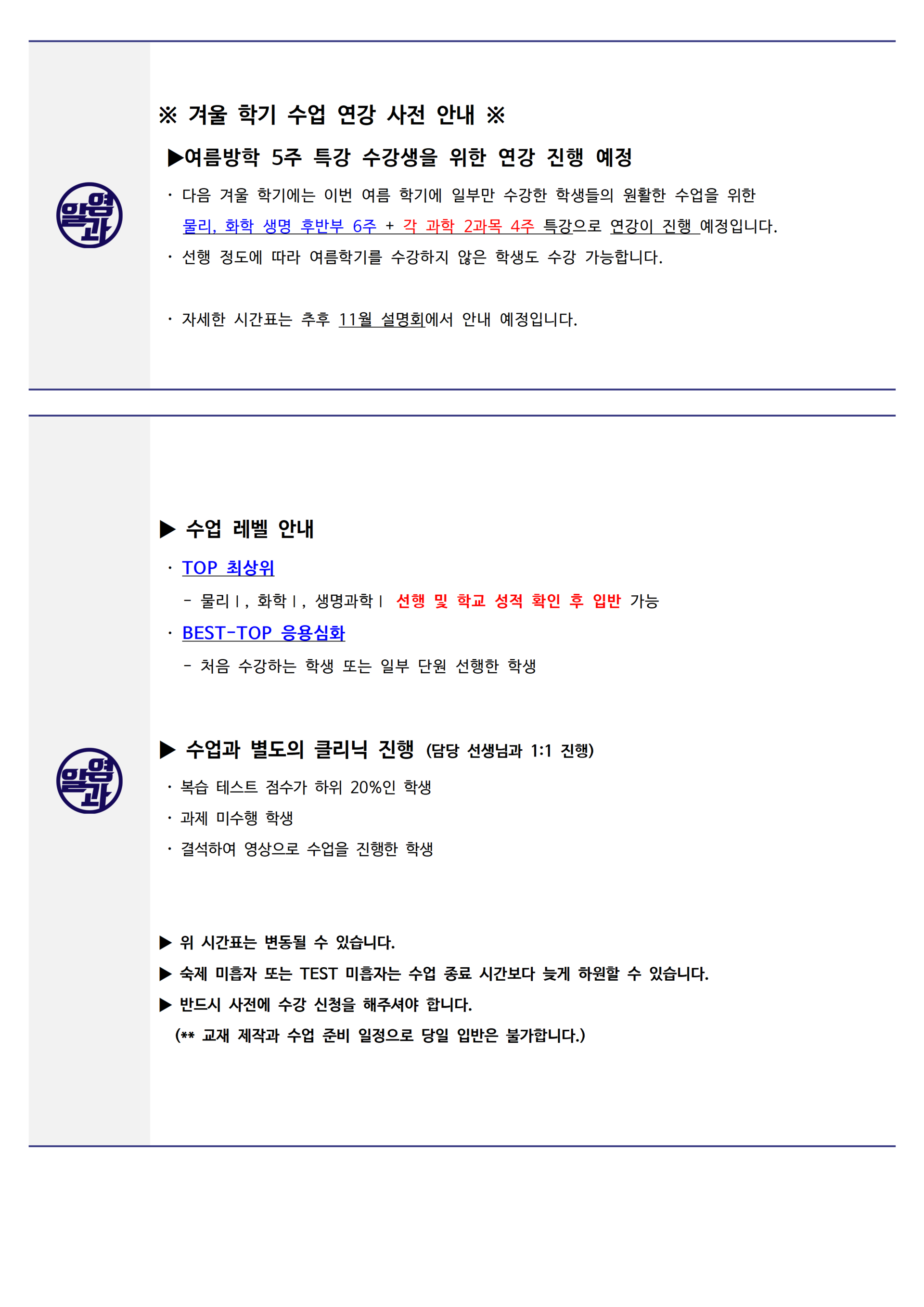 알과영과학학원 송파본원 고등관 운영시간